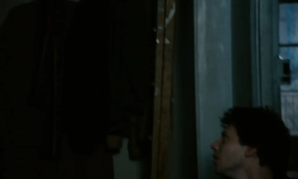 Skinny Asian guy with short black hair, early 20s, wearing glasses, sits in an office chair like he’s about to work. Then two slim white girls show up — one brunette with long hair, the other a short-haired blonde — and start stripping in front of him. They take turns sucking him, both going deep with their mouths while he just sits there looking stunned. The brunette rides him hard in the same chair, bouncing up and down while papers scatter off the desk. Later, they move to a hallway and he gives one of them a rough handjob against the wall, then finishes with a cumshot. Lighting stays dim throughout, mostly warm close-ups, feels like a quick secret fuck with zero pretense.