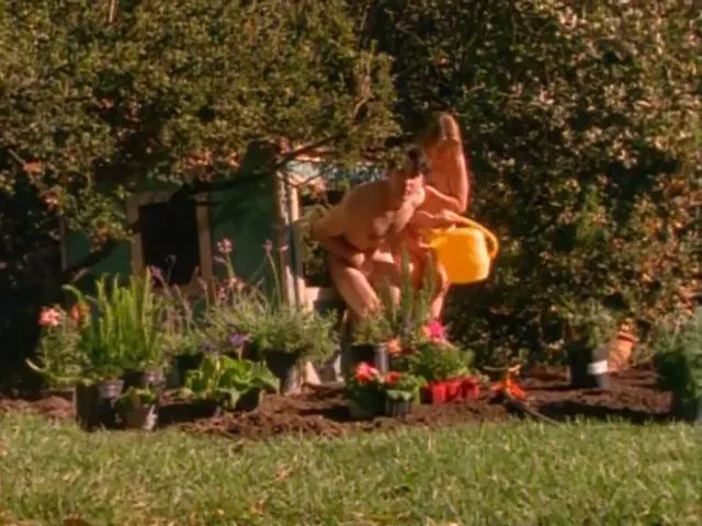 The blonde girl has a tight little body and long hair — she’s on her knees first thing, taking the guy’s dick deep in her mouth with messy, wet sounds. He’s got dark brown hair, lean build, gets her from behind after that with solid thrusts in doggy, her ass jiggling each time he slams in. They switch to missionary on the bed, slow grind at first then he picks up pace, her legs up over his arms. Scene starts in the bedroom but they’re also outside gardening together earlier, low-key chemistry before the sex. Camera stays close during oral, captures every gag and lip stretch. No wild acrobatics, just steady, intimate fucking with attention on her face and the way he pulls her hair slightly in doggy.