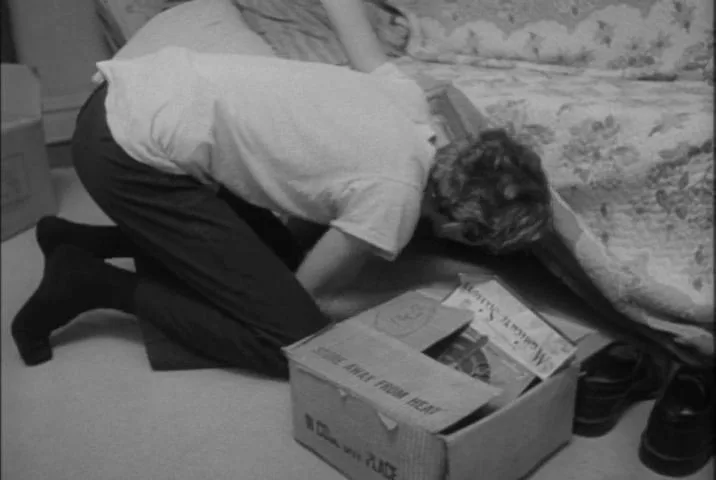 The blonde is the first one you notice — short hair, bangs, slim frame, totally nervous energy at first as she stands by the mirror covering her mouth like she’s about to do something she shouldn’t. Then the dark-haired girl pulls her into a hug, longer hair, tight tank top, clearly the one driving this thing. They start making out hard, hands everywhere, no hesitation. Then the blonde drops down, yanks the other girl’s pants down, and goes straight for sucking her pussy like she’s been waiting all day to do it. Shot in what looks like a basic bedroom setup with a dresser, TV on, some wall art — nothing fancy, but the camera stays wide enough to catch all the movement, all the shifts in position. You see the dark-haired girl push the blonde’s head down, hold her there, make her work for it. Later, she’s on her knees looking through a box like she’s searching for something, maybe a toy, but we don’t get to see that part. The vibe is casual, real, like two roommates who finally gave in. Good close-ups when the blonde licks up and down, tongue work is wet, messy, convincing.