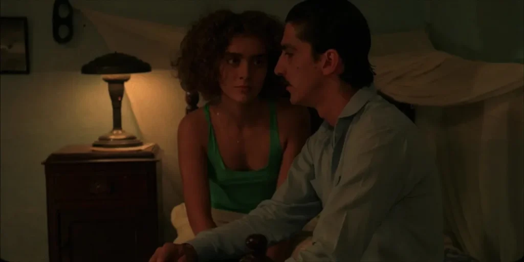 One of the girls has long, curly dark hair and a slender frame — she’s on top early, grinding against the other girl who’s lying back on the bed. The second girl’s hair is lighter, shoulder-length, and straight, with a slightly curvier build. They start off slow, kissing deeply while hands slide under clothes, then peel everything off once things heat up. The action shifts to missionary with lots of eye contact, tongues, and fingers working clits while the camera stays tight. Later they switch to spooning position, one girl jerking off the other from behind with her hand while sucking her neck. Dim lighting from a table lamp and natural window light gives the whole thing a private, intimate vibe — feels like you’re watching something real, not staged.
