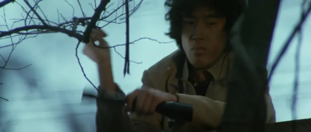 The video starts with a young woman in her 20s walking outside in daylight, wearing casual clothes, shot in wide frames on a tree-lined street. Later, the setting shifts indoors to a dimly lit space, possibly a stairwell or narrow hallway, where the same woman appears in closer interactions. Two male performers are present — one with curly hair seen outdoors, another older guy in his 30s shown in tight close-ups. Most of the intimate action happens off-camera but is implied through facial expressions, with clear close-ups on the men’s faces as they react. The woman isn’t shown fully nude, but her involvement in oral and intercourse scenes is evident from positioning and movement. Lighting stays low throughout the indoor portion, giving a raw, unfiltered look with handheld-style framing that keeps focus on faces and upper bodies during key moments.