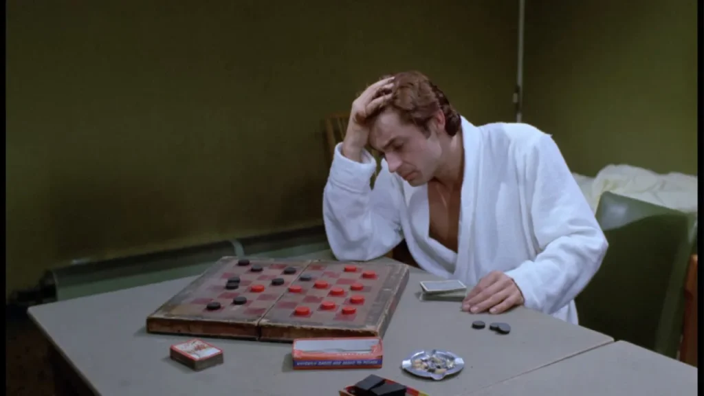 One scene shows a slim guy in his 20s with medium brown hair lying on a bed, shirtless, possibly asleep. The lighting is low, just sheets and a pillow around him — feels private, like a candid moment. Later, he’s on a boat, sitting by a window, jerking off slowly while looking out. His hand movement is relaxed, not rushed, like he’s been doing it a while. Another shot is a different guy, also slim, early 20s, short brown hair, sitting at a table with a game board and unlit cigarettes. He looks tense, maybe frustrated, staring down like he’s lost in thought. There’s an outdoor event scene with two guys — one older with gray mixed in his short hair, standing near flowers and signs, the other younger, same age range, both dressed up but not interacting. A redhead woman in her 20s appears briefly, long red hair, slim build, standing at an indoor event with flower arrangements, dim light, but no sexual activity. The video cuts between these moments without dialogue or clear narrative — feels more like voyeuristic clips than a staged porn. Close-ups focus on faces and hands, natural lighting in outdoor shots, darker tones inside. Nothing explicit beyond the handjob, but the mood is intimate, low-key.