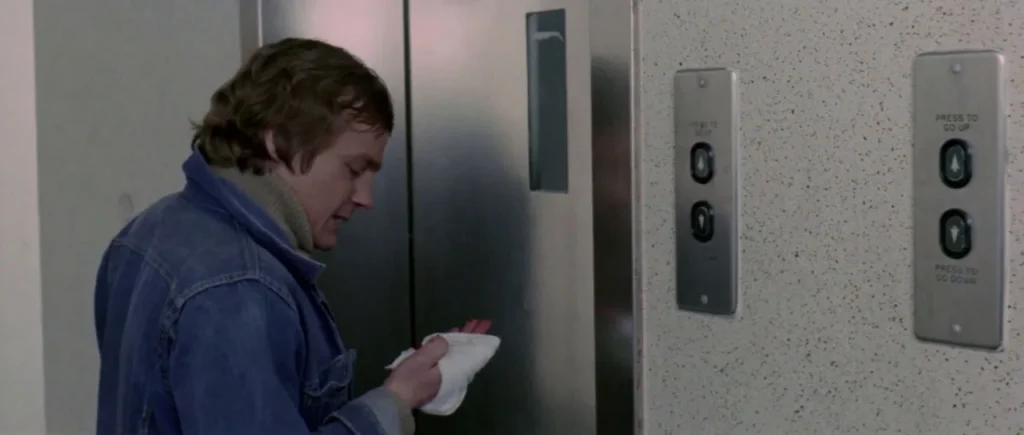 The brunette has long brown hair and a slim frame, wearing casual clothes like she just walked out of a park. She’s kneeling in front of a guy in an elevator, pulling his cock out and starting to jerk him off with both hands. The lighting is dim, mostly from the elevator panel and weak ceiling lights, so it feels voyeuristic, like someone filming quietly. You see her cup his balls at one point, then slide her hand up and down the shaft while looking up at him. No talking, no eye contact with the camera — just a straightforward handjob in a real-looking indoor setting. The guy doesn’t move much, just leans against the wall, letting her do all the work.
