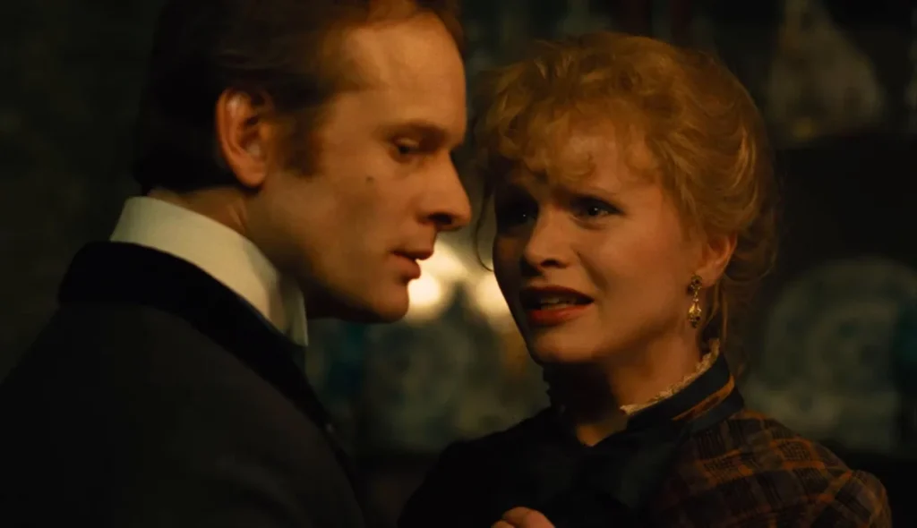 The video opens with a slim, mature brunette in a fur coat standing alone in a dark room, close-up on her face — curly brown hair, subtle makeup, looks serious. She’s later seen in a white dress by a door, then digging through a dresser drawer wearing jewelry, all shot in dim, moody lighting. A guy in a suit appears in a garden during an overcast day, short brown hair, slim build, looks in his 30s. Most of the action is indoors, intimate close-ups, him and her moving close, kissing, hands exploring — feels slow and sensual, not rushed. The lighting keeps things shadowy, focusing on textures — fur, fabric, skin — and the camera lingers on hands, faces, small gestures instead of full-body shots. No explicit sex acts visible in the frames, but the mood is clearly building toward something private and quiet, more emotional than hardcore.